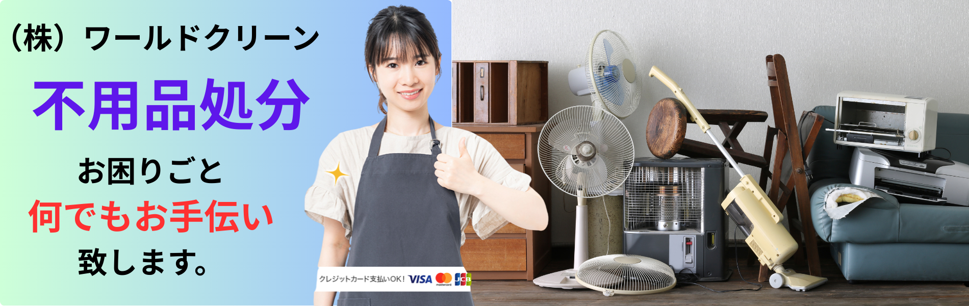 企業、工場、事務所、店舗および家庭などからの不用品を処分しています。解体や火事現場片付け処分、近年増加傾向の遺品整理も対応しています。